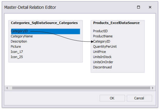 Click Manage Relations to specify a master-detail relationship between these queries.