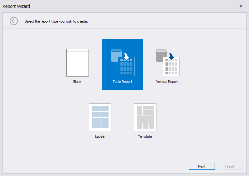 Select data members for the report and its detail reports. Select data fields to display in the report and click Finish. You can also go to the next page to continue layout creation.