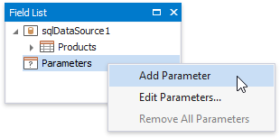 Switch to the Field List, right-click the Parameters section and add a new report parameter.