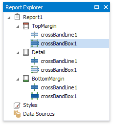 The following image illustrates how the Report Explorer reflects cross-band controls: